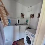 Köksfaciliteterna på boendet inkluderar kylskåp och glas, som finns i matplats.